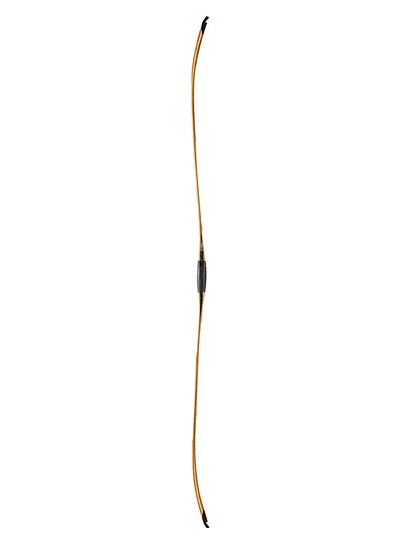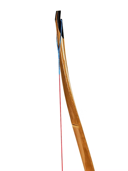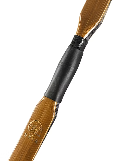 The original bow is a short reflex bamboo bow and we enlarged it to suit longer draw length. The bending limbs of the bow is laminated with natural bamboo and modern glue.